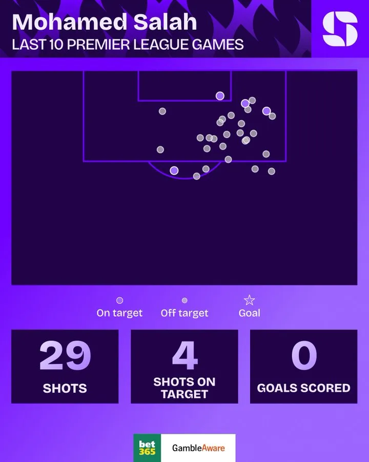 开云平台-萨拉赫近10场英超0进球:禁区内触球80次+射门29次+4次射正